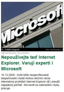 Co mě ale zvedlo ze židle? Jak už říkal Miloš Zeman – “Novináři jsou pitomci, hnůj a fekálie”. A tak tedy nějaký blbeček z iDnes sepsal naprosto zmatečnou zprávu o doporučení (Microsoftem) nepoužívat Internet Explorer.