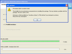 V mém případě vznik problém při instalaci HP 3390. Instalace balíku spadla na chybě MSI.dot4msi, error code 2753.