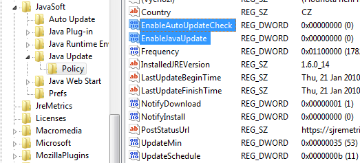 HKLM\SOFTWARE\JavaSoft\Java Update\Policy