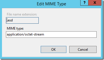Pomocí tlačítka Add přidejte záznam .esd – application/octet-stream.