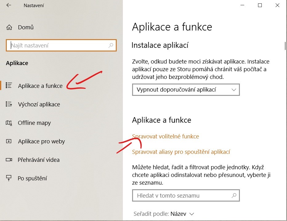 Instalace přes systémová nastavení
