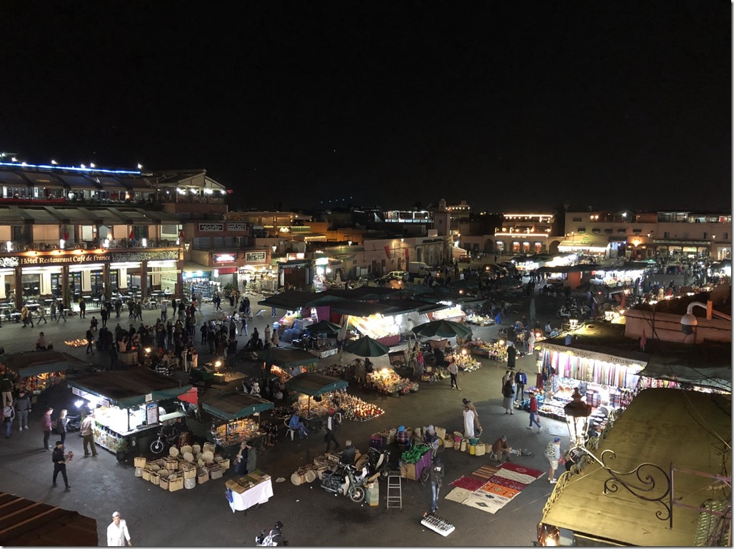 Centrální místo starého města. Neskutečně hlučné místo plné turistických atrakcí, jako jsou zaklínači hadů, artisté, hudebníci… V odpoledních hodinách přibude spousta stánků s jídlem a dá se tu slušně najíst.