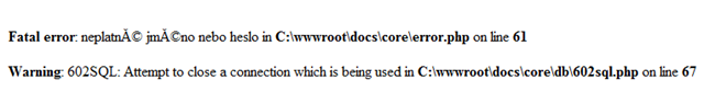 Dalším nepochopitelným úletem je naprosto složité ovládání aplikaci. Nazval bych až nepřátelské a složité. O uživatelské přívětivosti jasně hovoří co se stane po zadání špatného uživatelského jména a hesla (viz. obrázek). To nemůže myslet vážně snad ani student písecké průmyslovky!